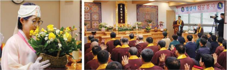 이어 처음부터 법성사 신축을 맡아 원만수행공사를 마쳐온 주식회사 대영주택 양태영 대표의 공로에 대한 감사패를 전달했으며, 마니합창단의 축가 ‘꽃이피었구나’, ‘총지종의 노래’ 음성공양으로 이날 법회는 여법하게 마무리 되었다.